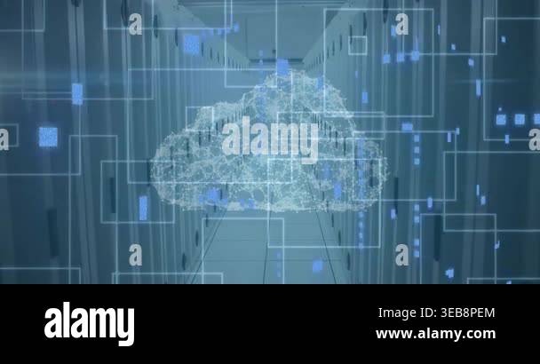 Animation of data processing with network of connections and cloud icon ...