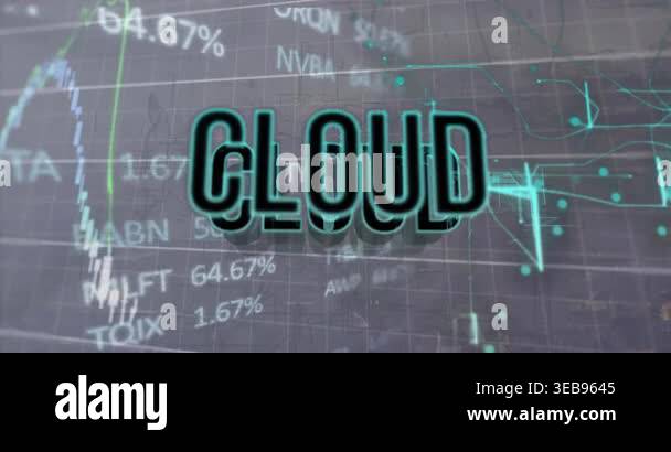 Animation of financial data processing over digital cloud with cloud ...