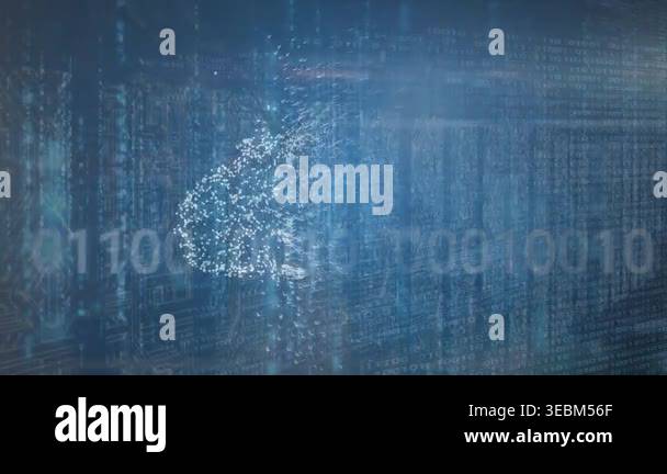 Animation of data processing and binary coding over digital cloud ...