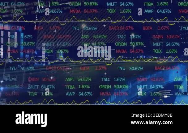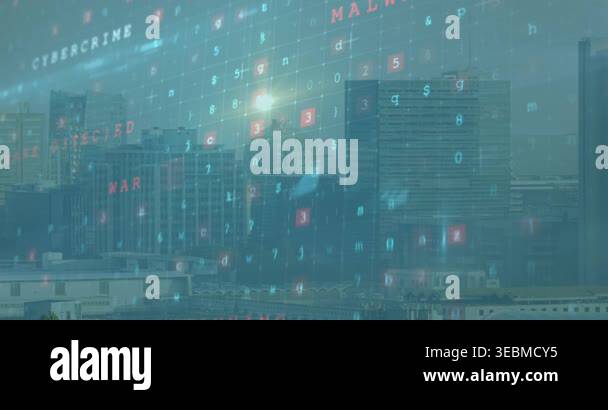 Animation of statistics and financial data processing over cityscape ...