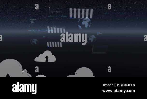 Animation of clouds and data processing with globes. global cloud ...