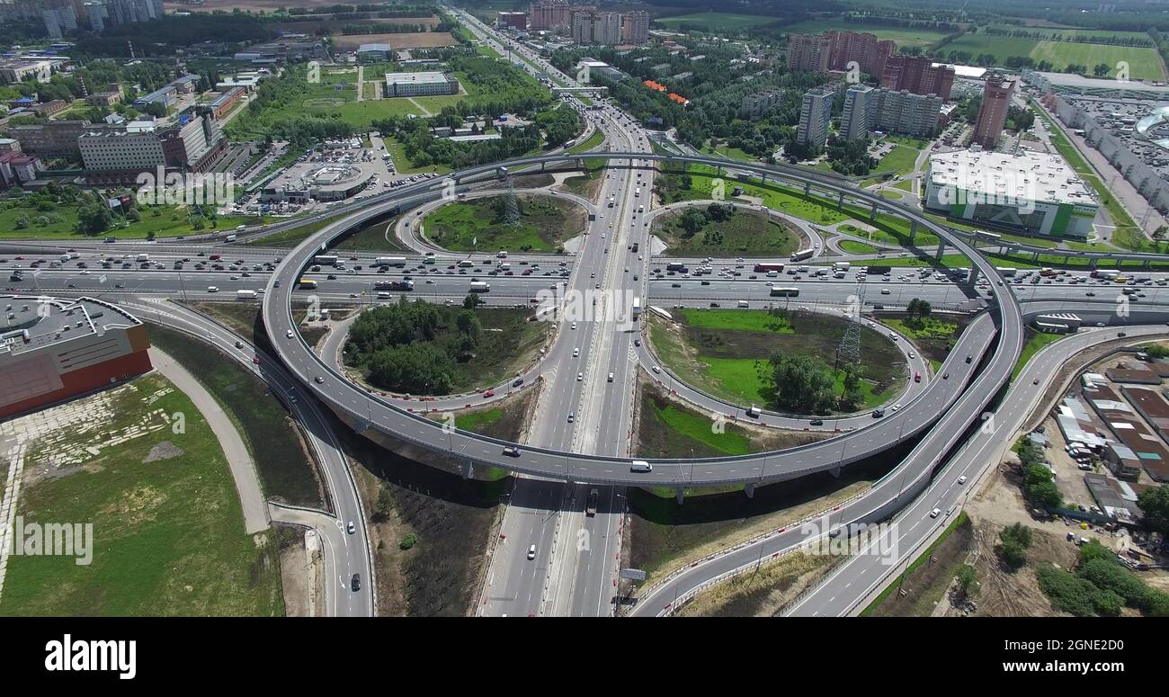 Cloverleaf intersection with circular overpass, aerial view Stock Photo ...