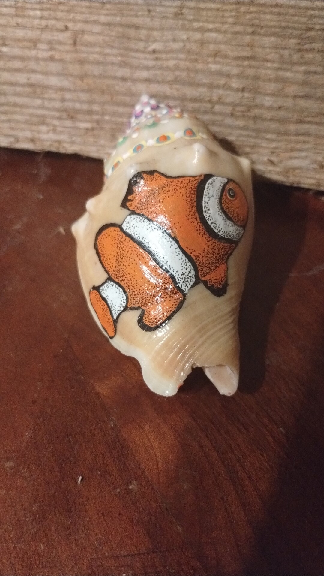 Handpainted clown fish in resin. Shells are the only thing that is real ...
