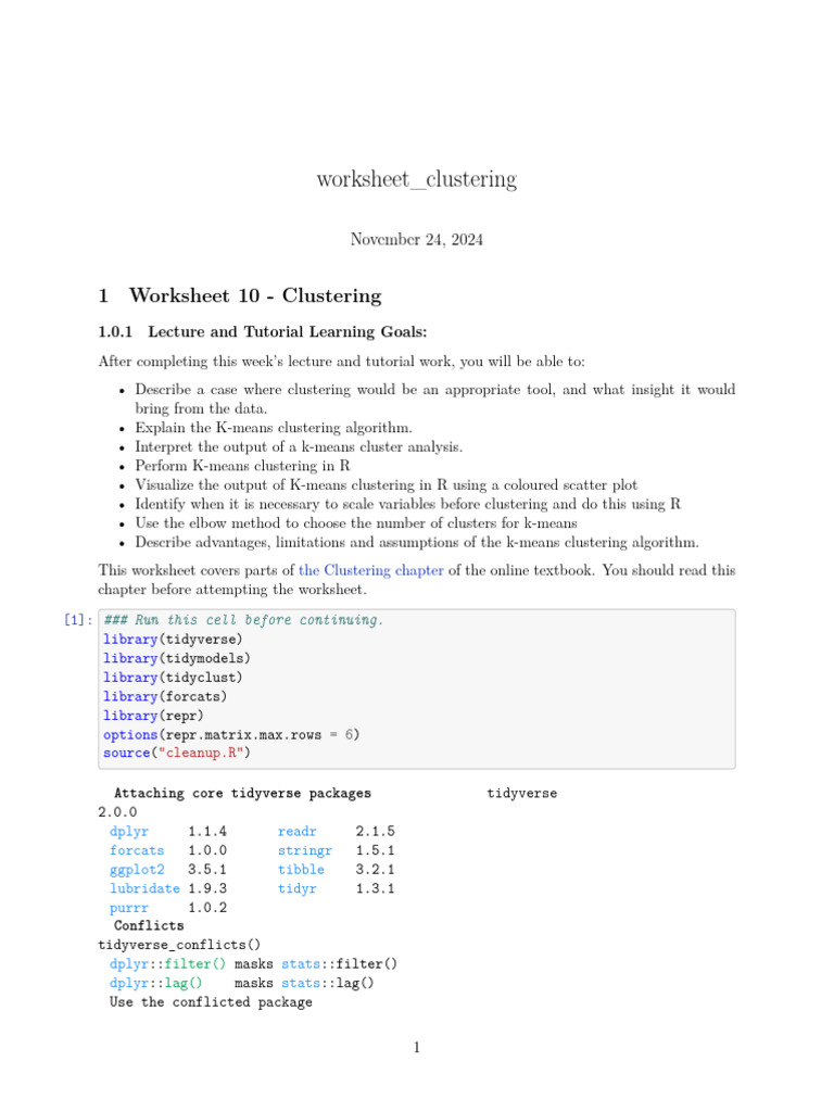 Worksheet Clustering | PDF | Cluster Analysis | Computer Programming