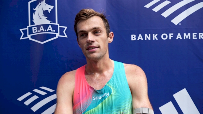 Anthony Camerieri reacts after finishing as 2nd American at the BAA 5K ...