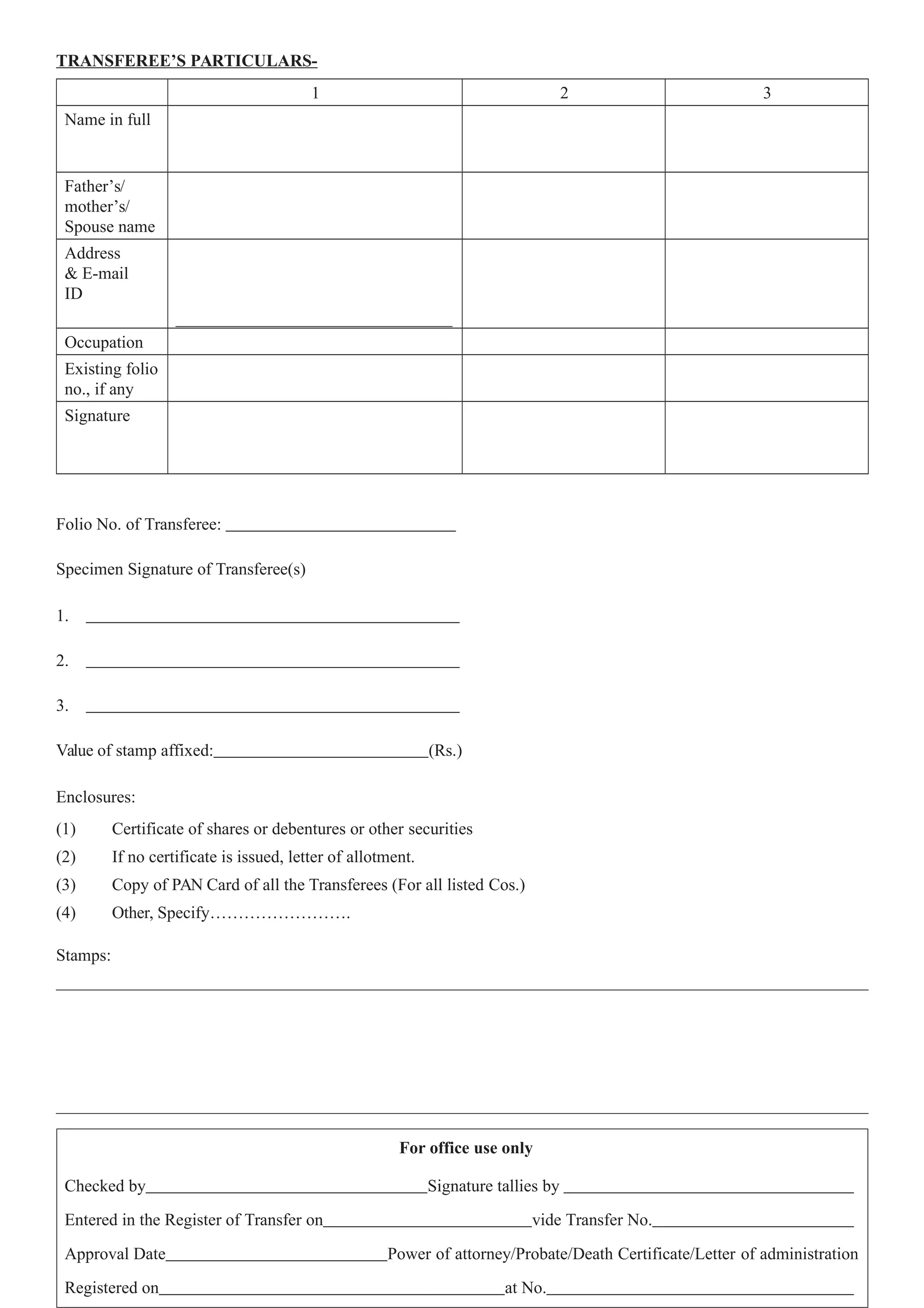 India Securities Transfer Form - Fill Out, Sign Online and Download PDF ...