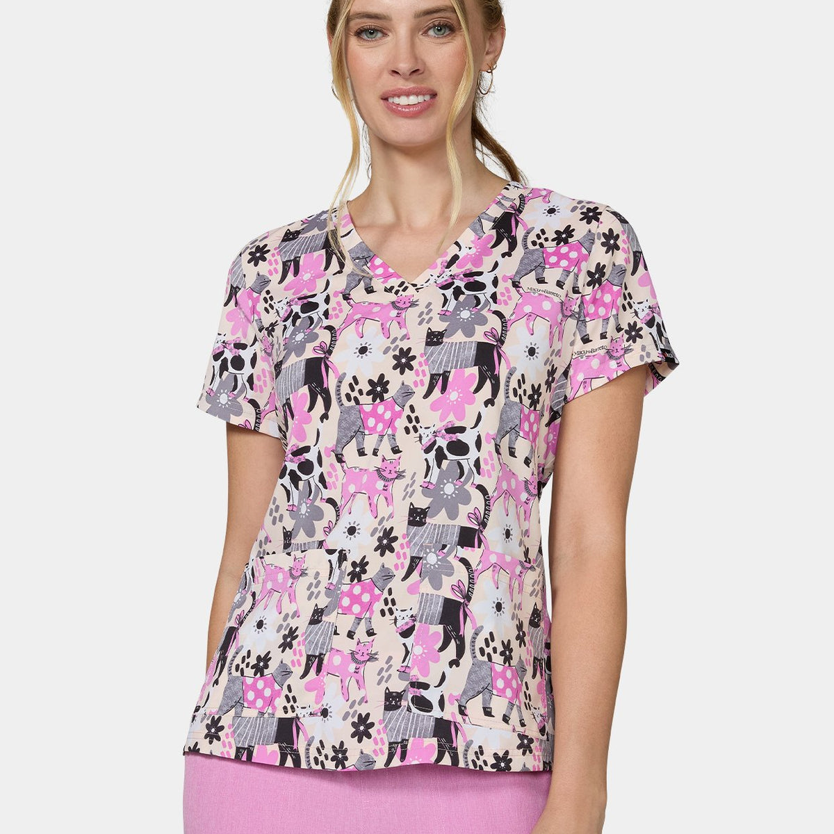 Koi Basics Leslie Scrub Top - Everyday Floral Cats – Happythreads UK