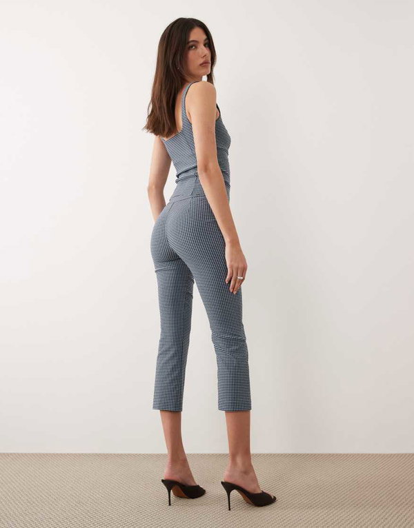MANGO Victoria Capri Pants Co-ord In Blue Check | endource