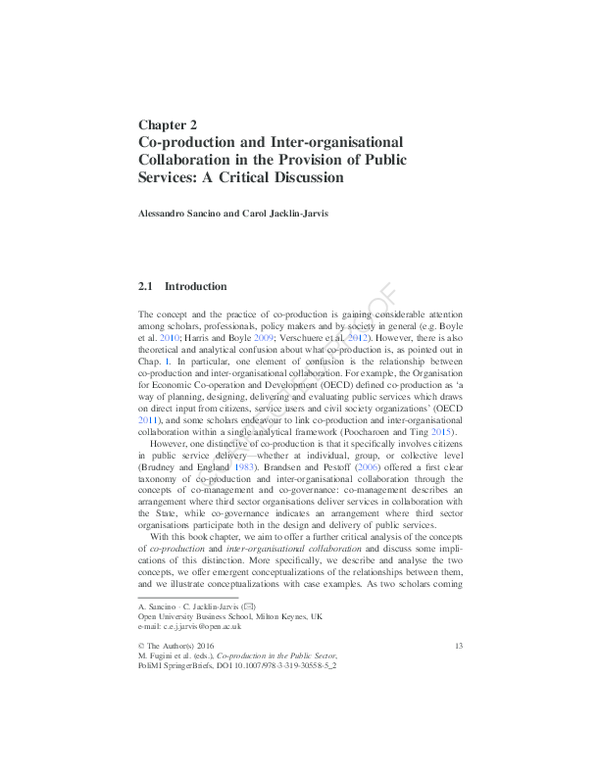(PDF) Co-production and Inter-organisational Collaboration in the ...