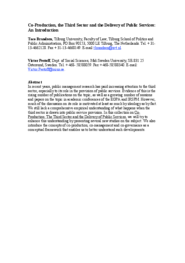 (PDF) Co-production, the third sector and the delivery of public ...