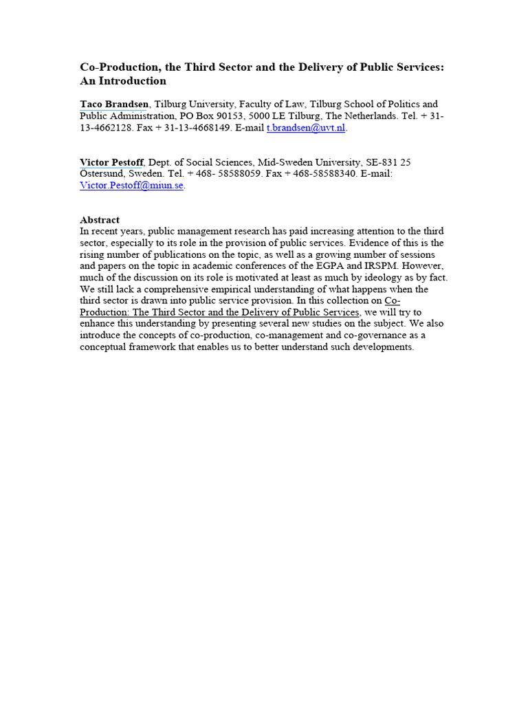 Co-Production, The Third Sector and The Delivery of Public Services ...