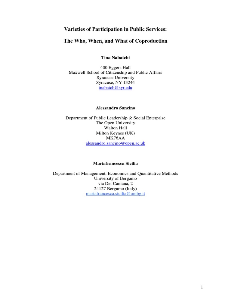 (PDF) Varieties of Participation in Public Services: The Who, When, and ...