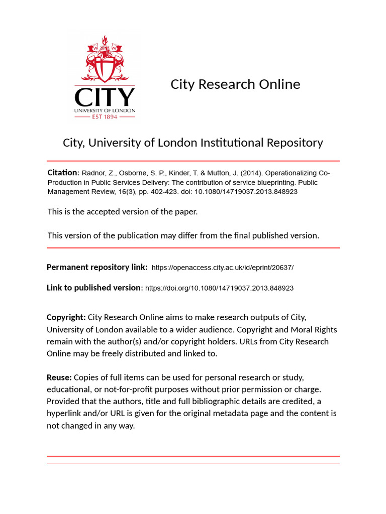 Conceptualizing co-production for public service delivery (Osborne et ...