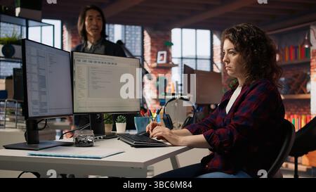 Developer and programmer engaging in discussion and teamwork, focusing ...