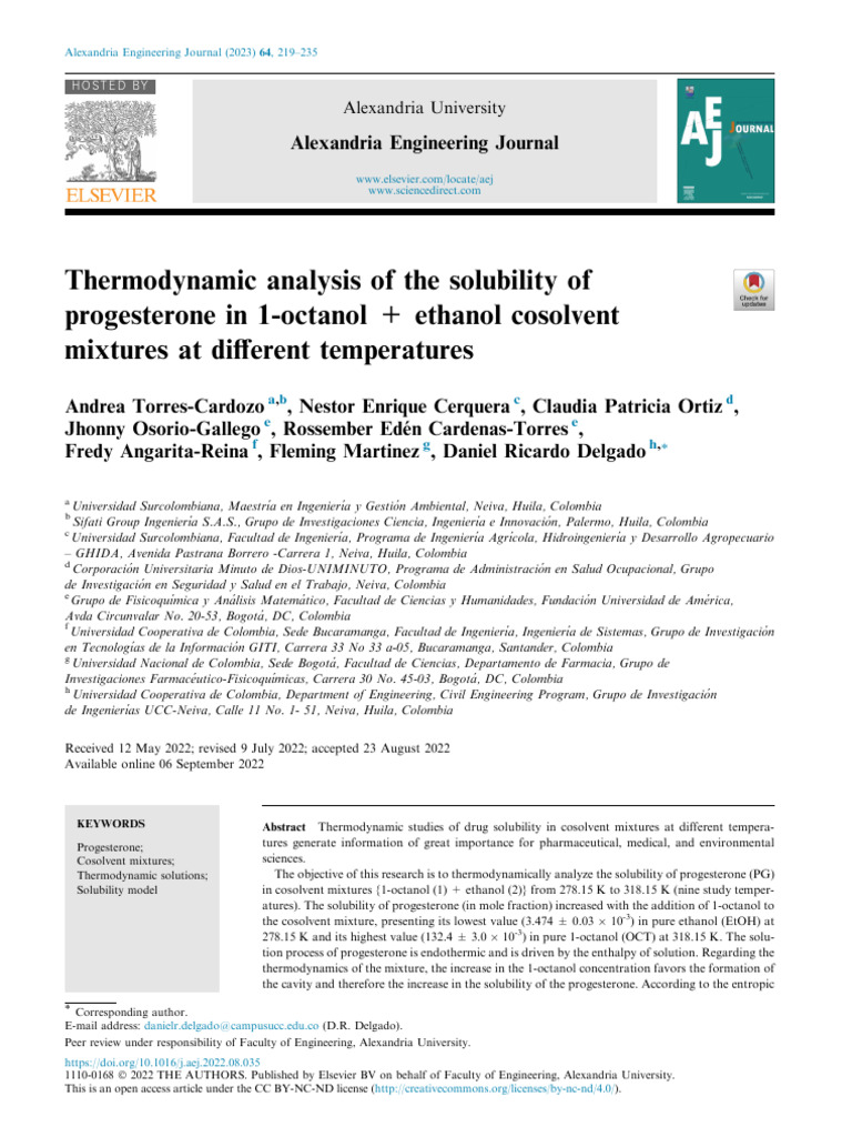 Thermodynamic Analysis of The Solubility of Progesterone in 1-Octanol ...
