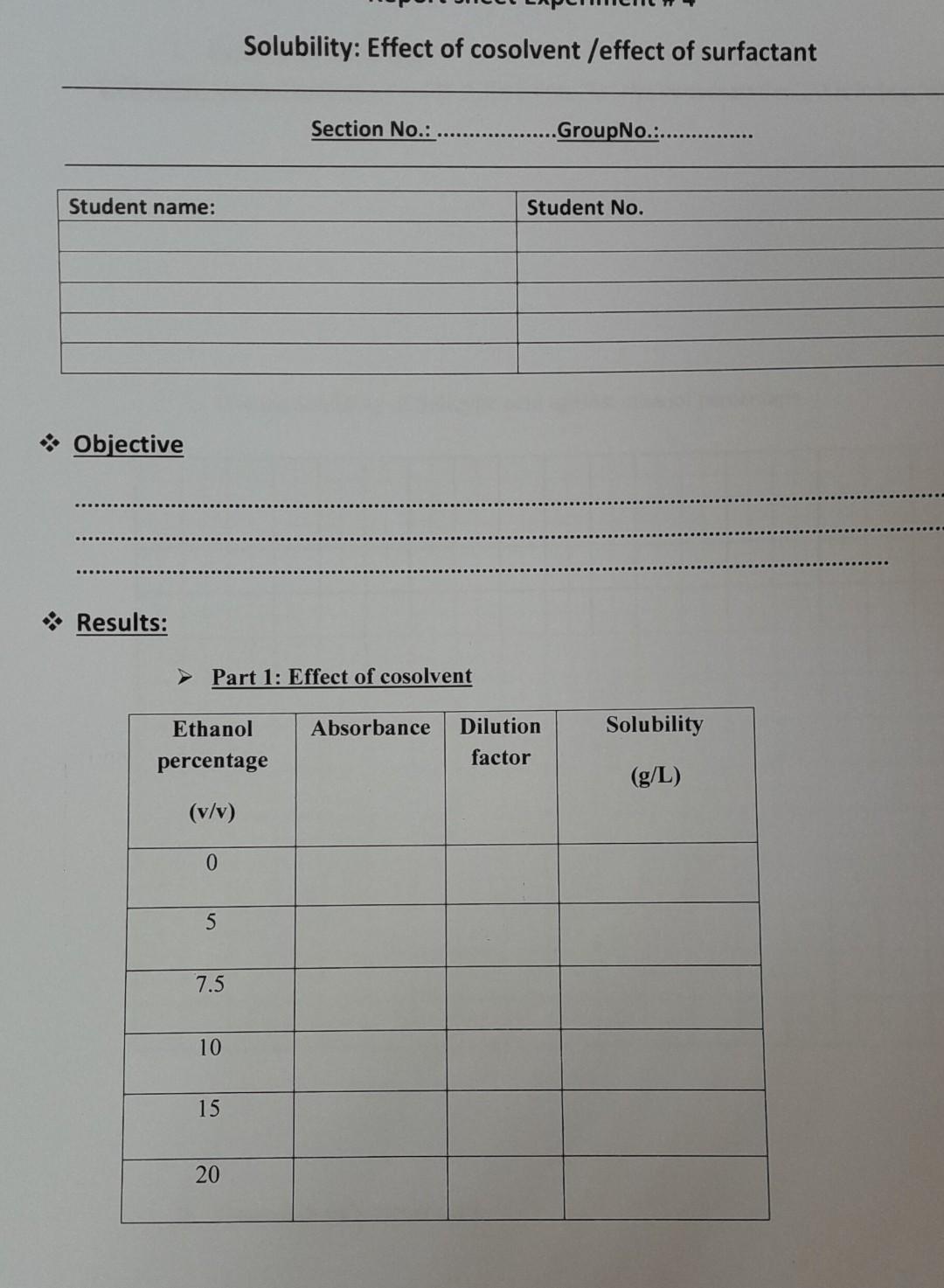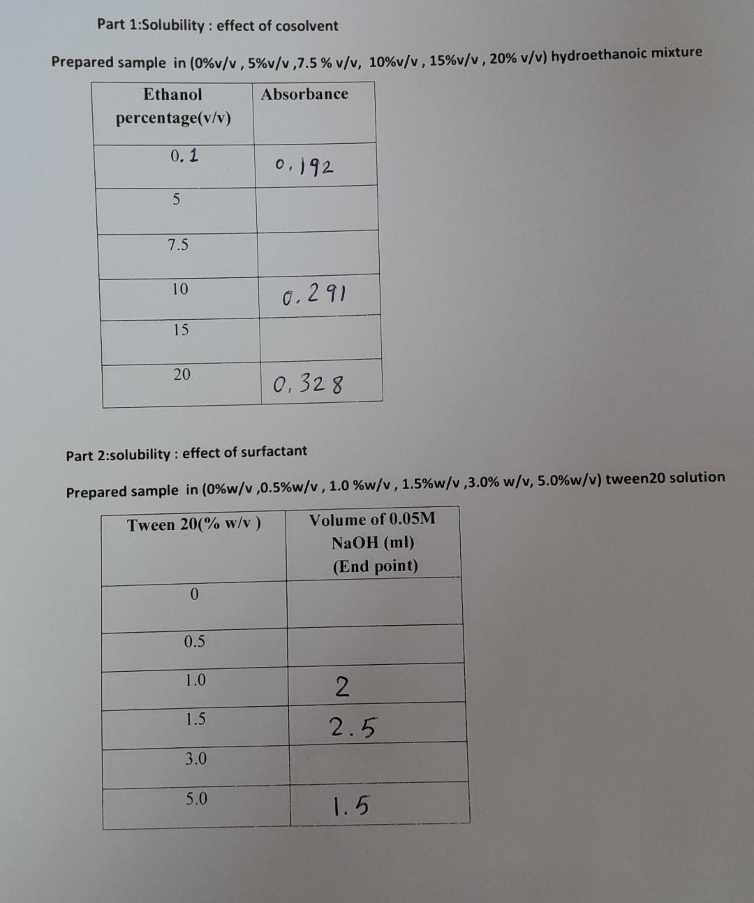 Part 1:Solubility : effect of cosolvent Prepared | Chegg.com