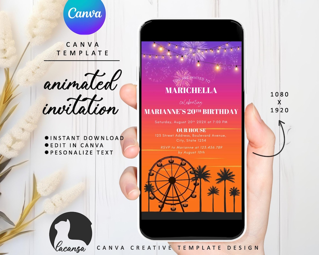 Animated Coachella Birthday Party Invitation, Editable Festival Party ...