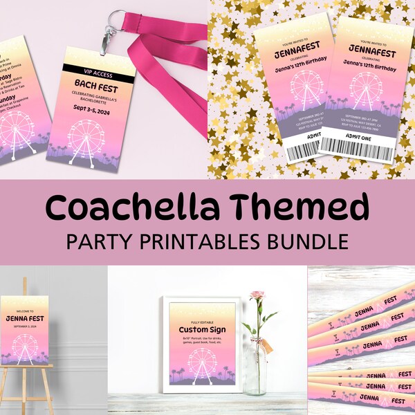 Coachella Festival Party Invites & Printable Decor | VIP Tickets ...