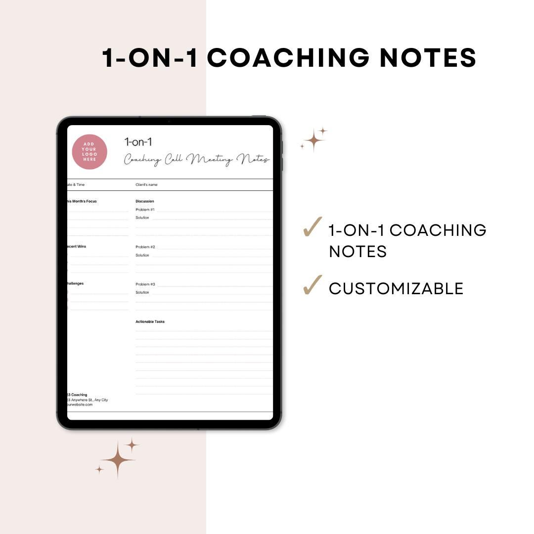 Digital 1-on-1 Coaching Notes Template | Coaching Call Meeting Planner ...
