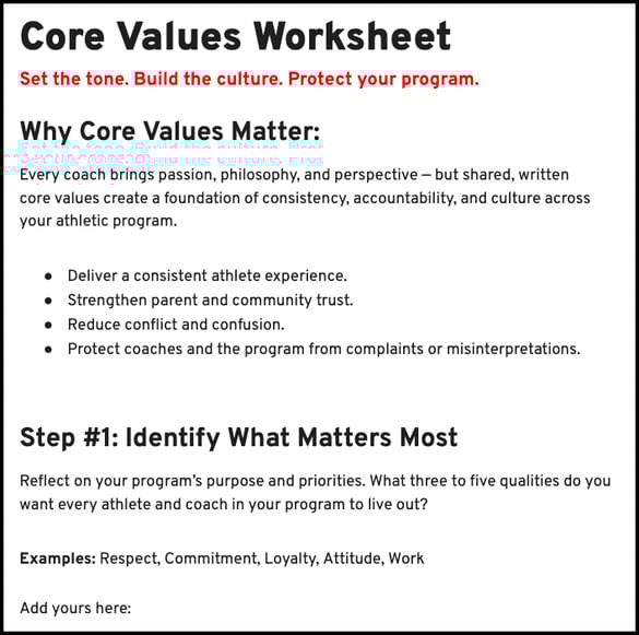 Coach Core Values Worksheet