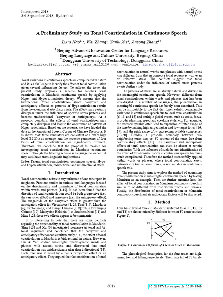 A Preliminary Study On Tonal Coarticulation in Continuous Speech | PDF
