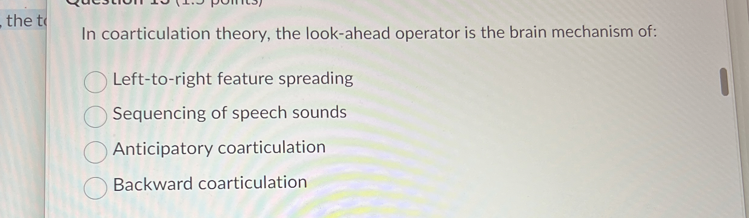 Solved In coarticulation theory, the look-ahead operator is | Chegg.com
