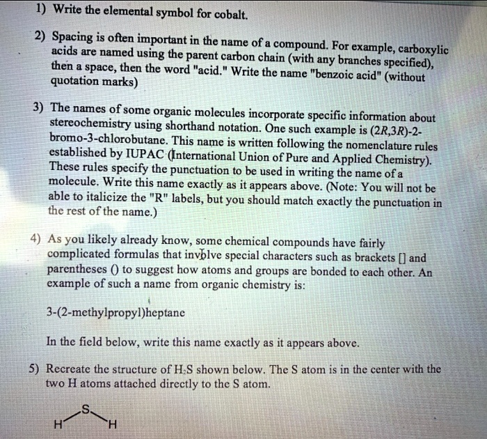 1 write the elemental symbol for cobalt 2 spacing is often...
