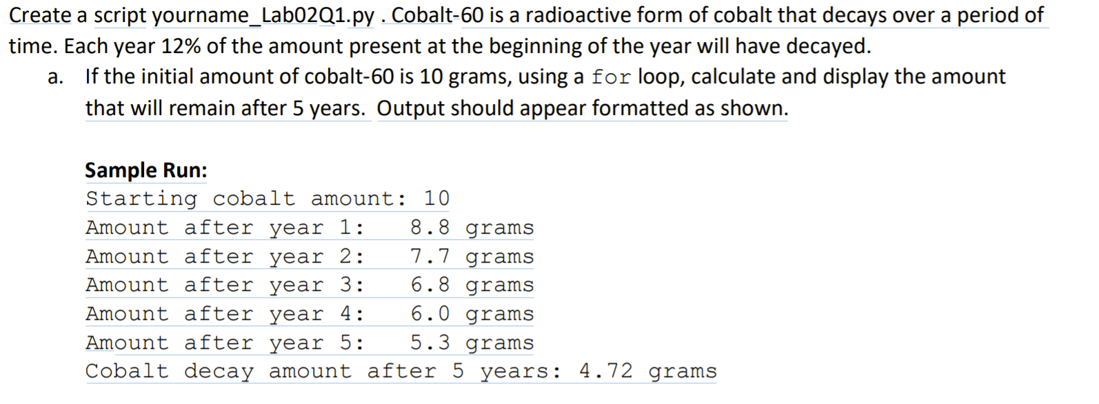 Solved PYTHON ONLY!!! Create a script. Cobalt-60 is a | Chegg.com