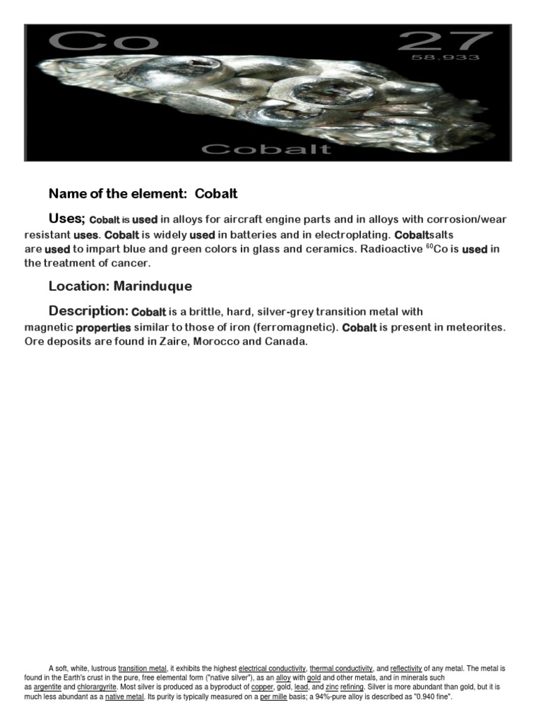 Cobalt: Properties and Key Uses | PDF