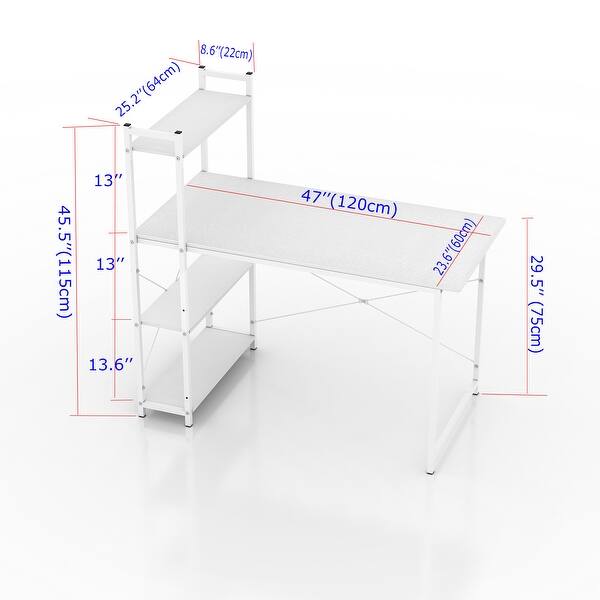 47 in. Retangular White Cobble Computer Desk with a 4-Layer Bookshelf ...