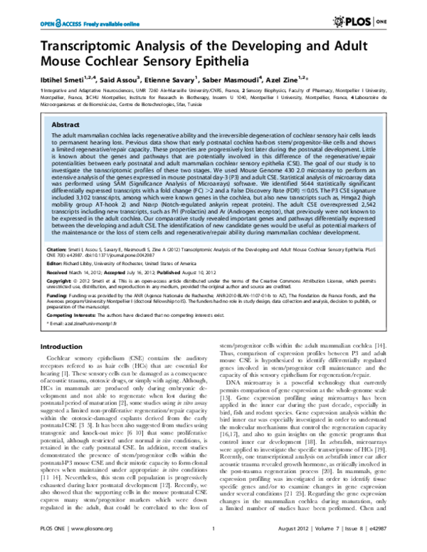 (PDF) Identification of mouse cochlear progenitors that develop hair ...