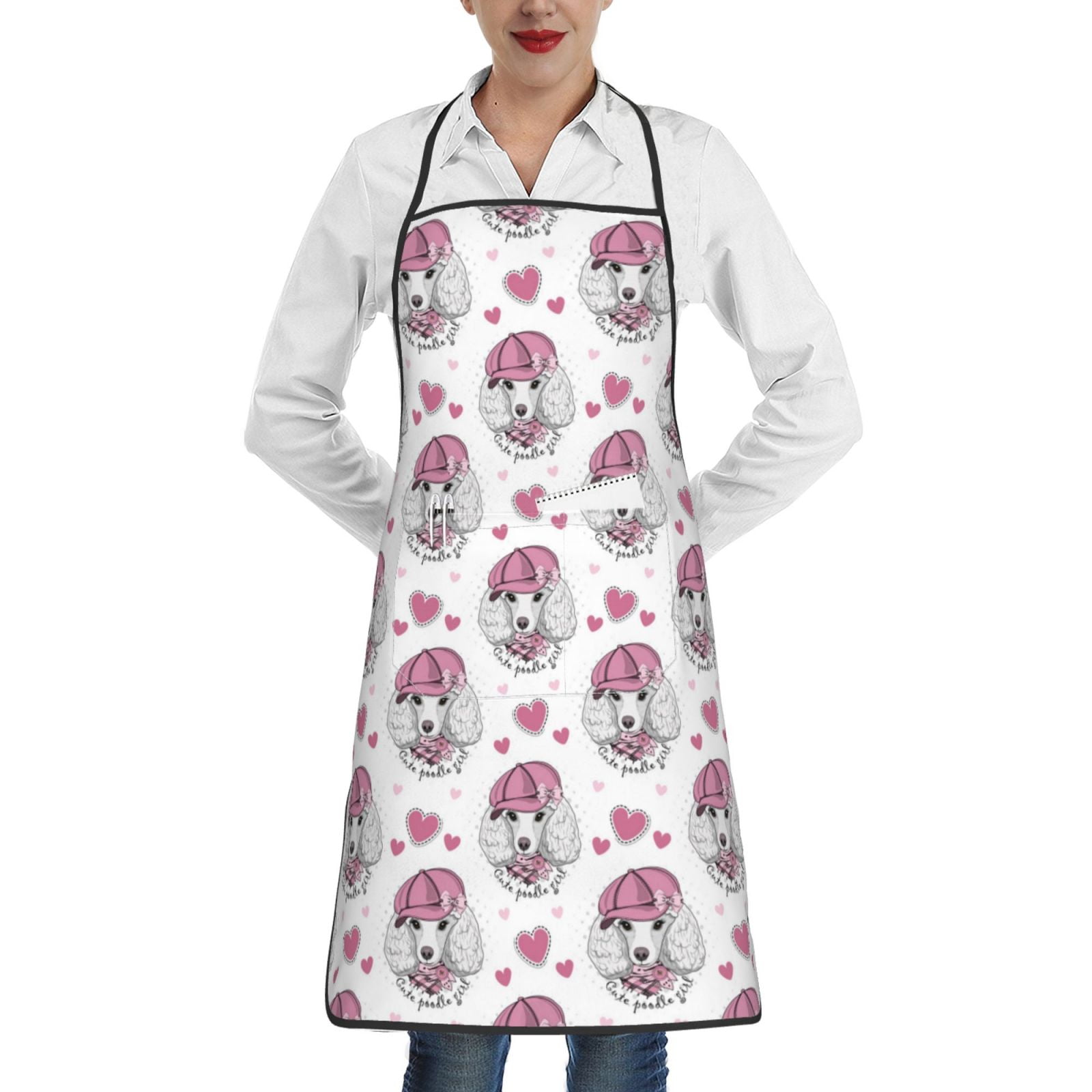 Easygdp Cute Poodle Dog Waterproof Apron with Pockets Adjustable ...