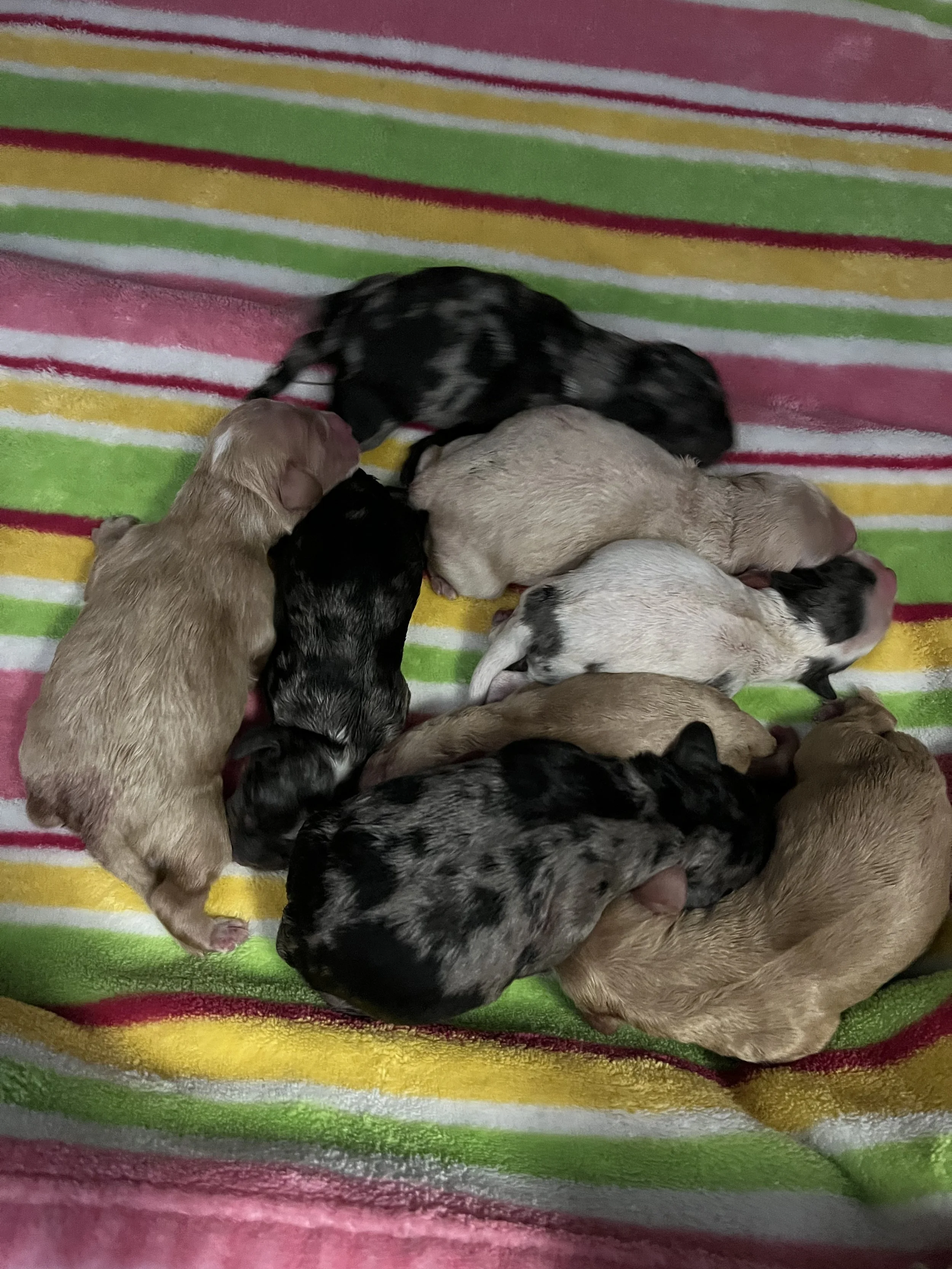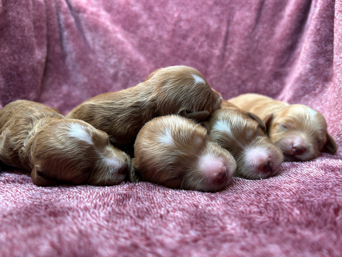Iowa, Minnesota and Illinois, F1b Cockapoos Born, Reds With White Markings