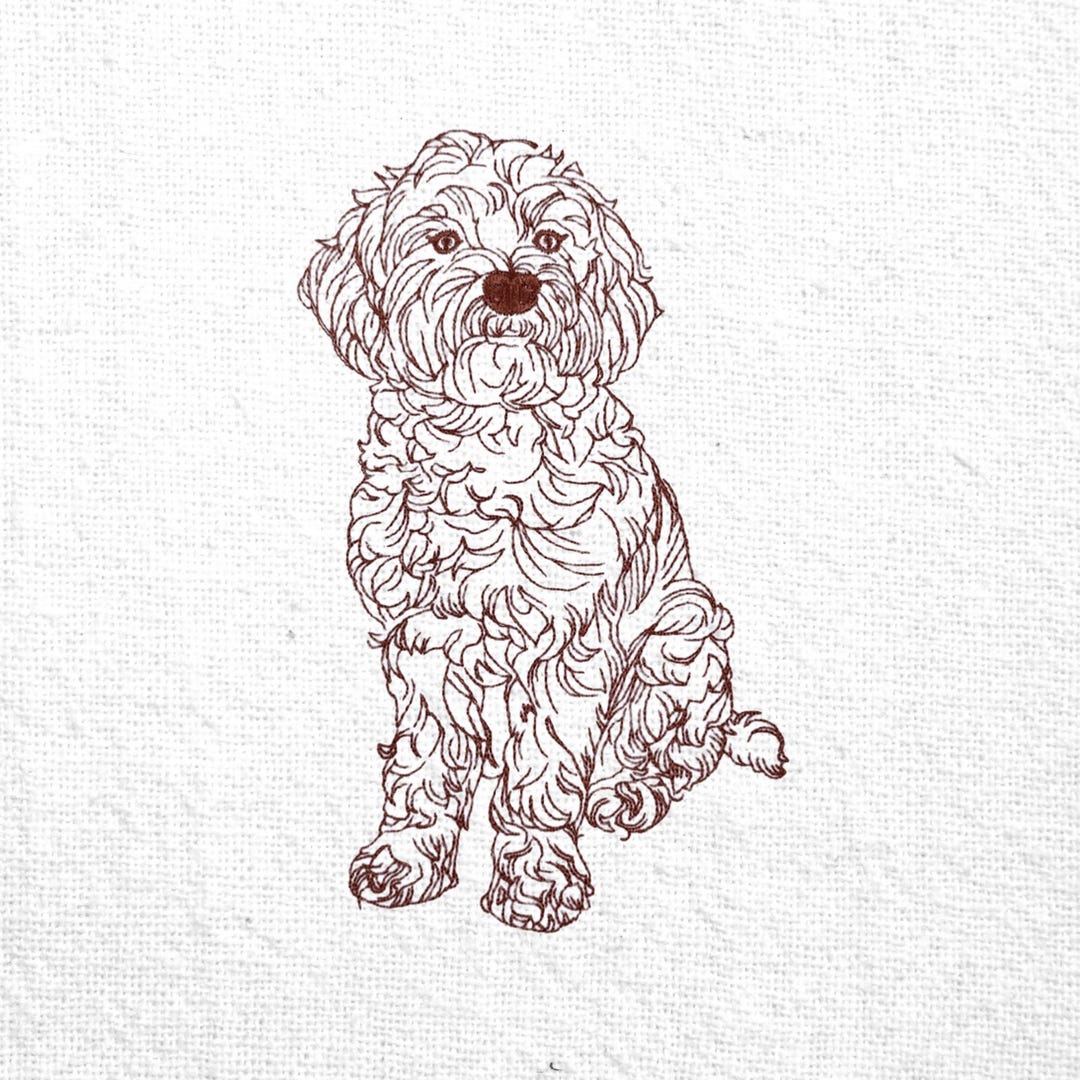 Cockapoo Dog Embroidery Design – Redwork Sketch Pattern – 5 Hoop Sizes ...