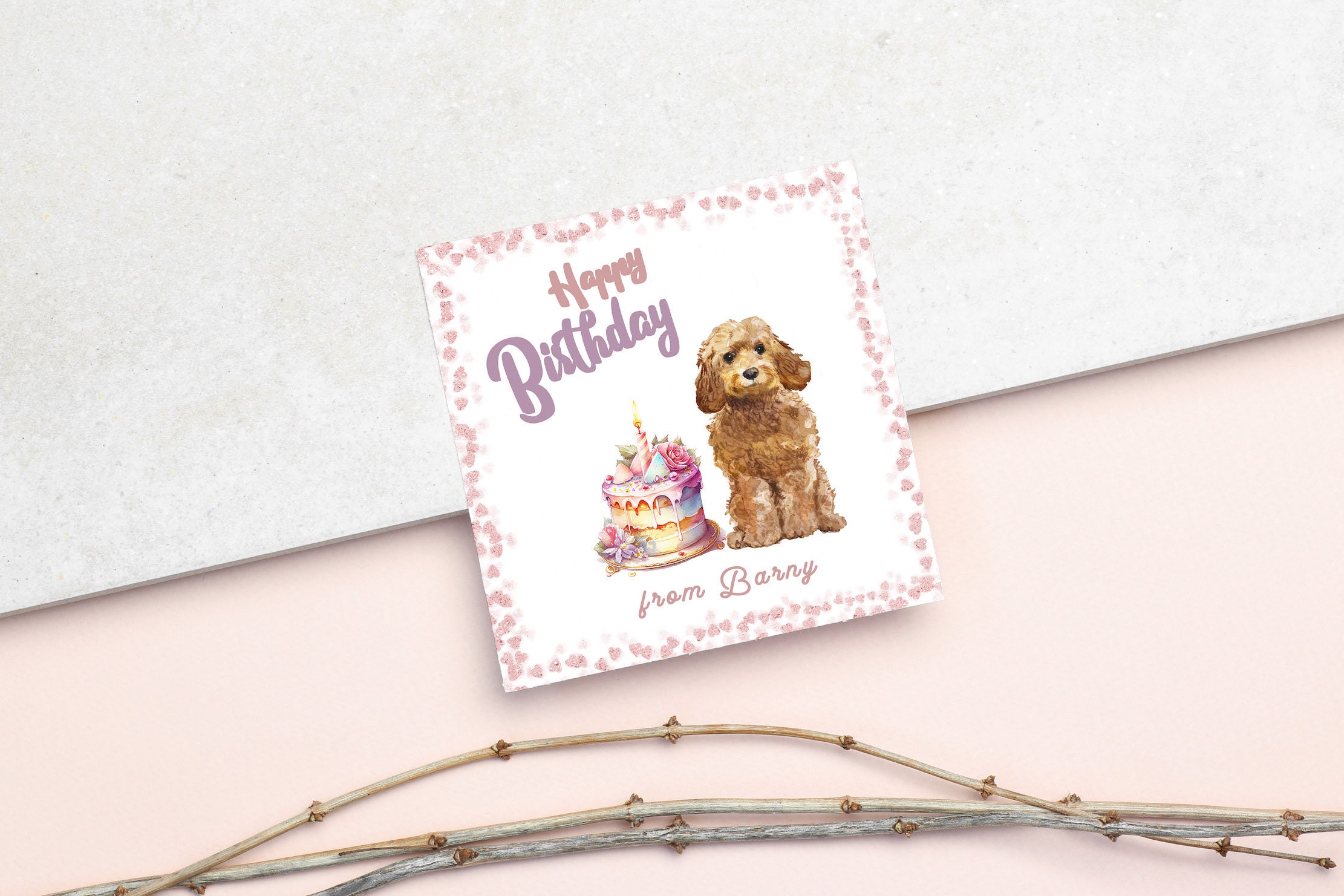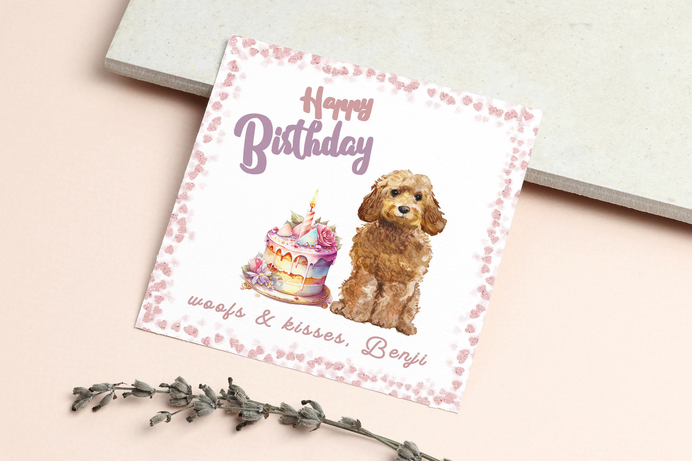 Cockapoo Birthday Card, Personalised Card, Cream/White Colour, Dog ...