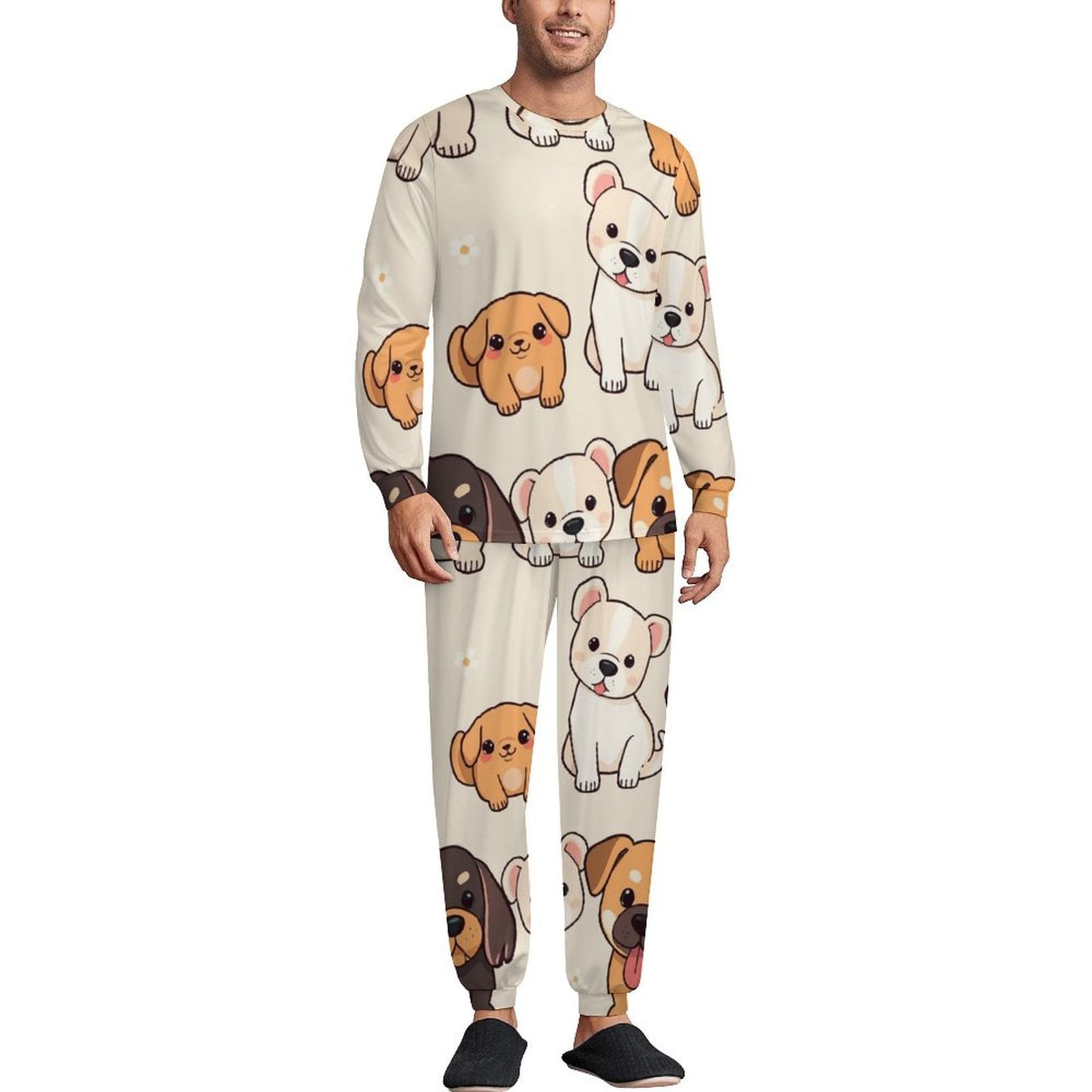Cute Puppy Pattern Design Pajamas Long Sleeves 2 Pieces Room Pajama ...