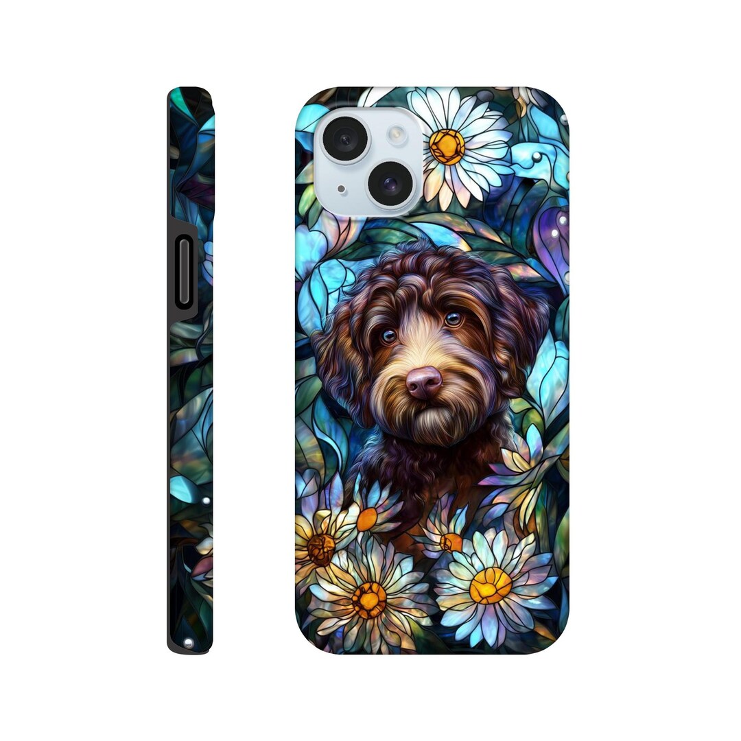Chocolate Brown Cockapoo Dog Stained Glass Phone Case for iPhone ...