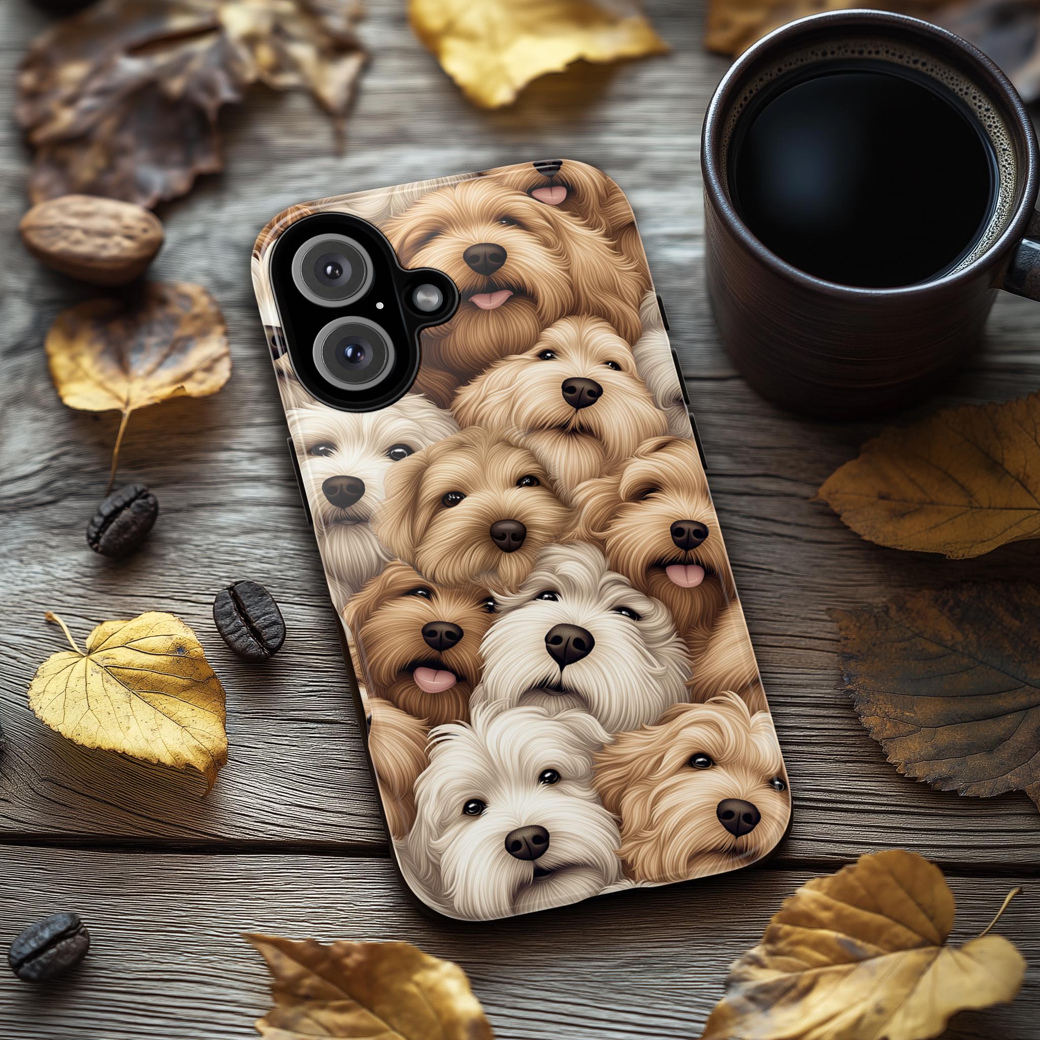 Phone Case, Cockapoo Dog Print, Cute Fluffy Dogs, Tan, Golden, Tough ...