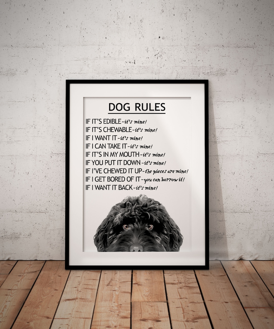 Peeking Black Cockapoo Dog Rules Giclée Art Print – Personalised Pet ...