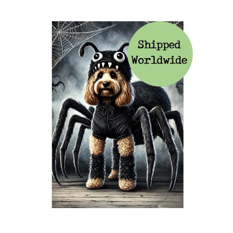 Halloween Dog PNG Sublimation Design, Fall Cockapoo Clipart With Spider ...