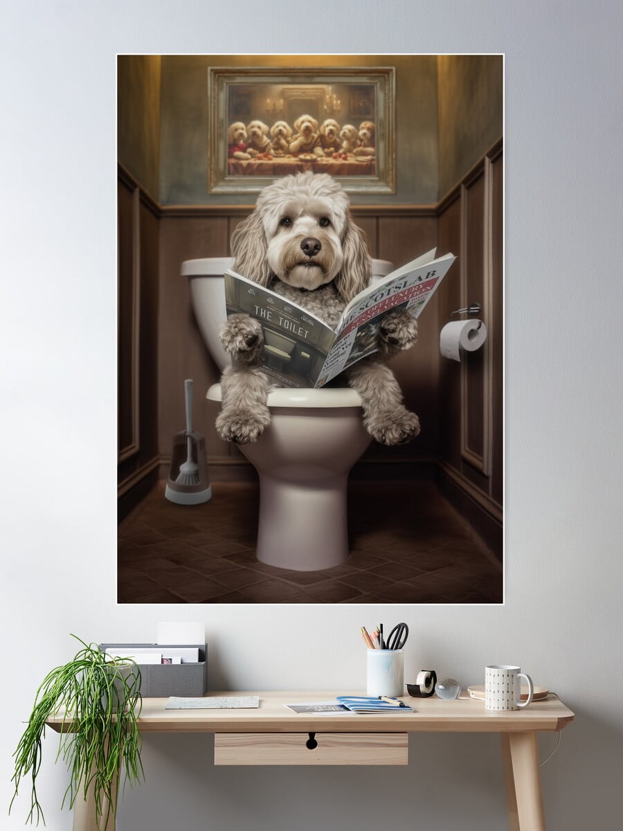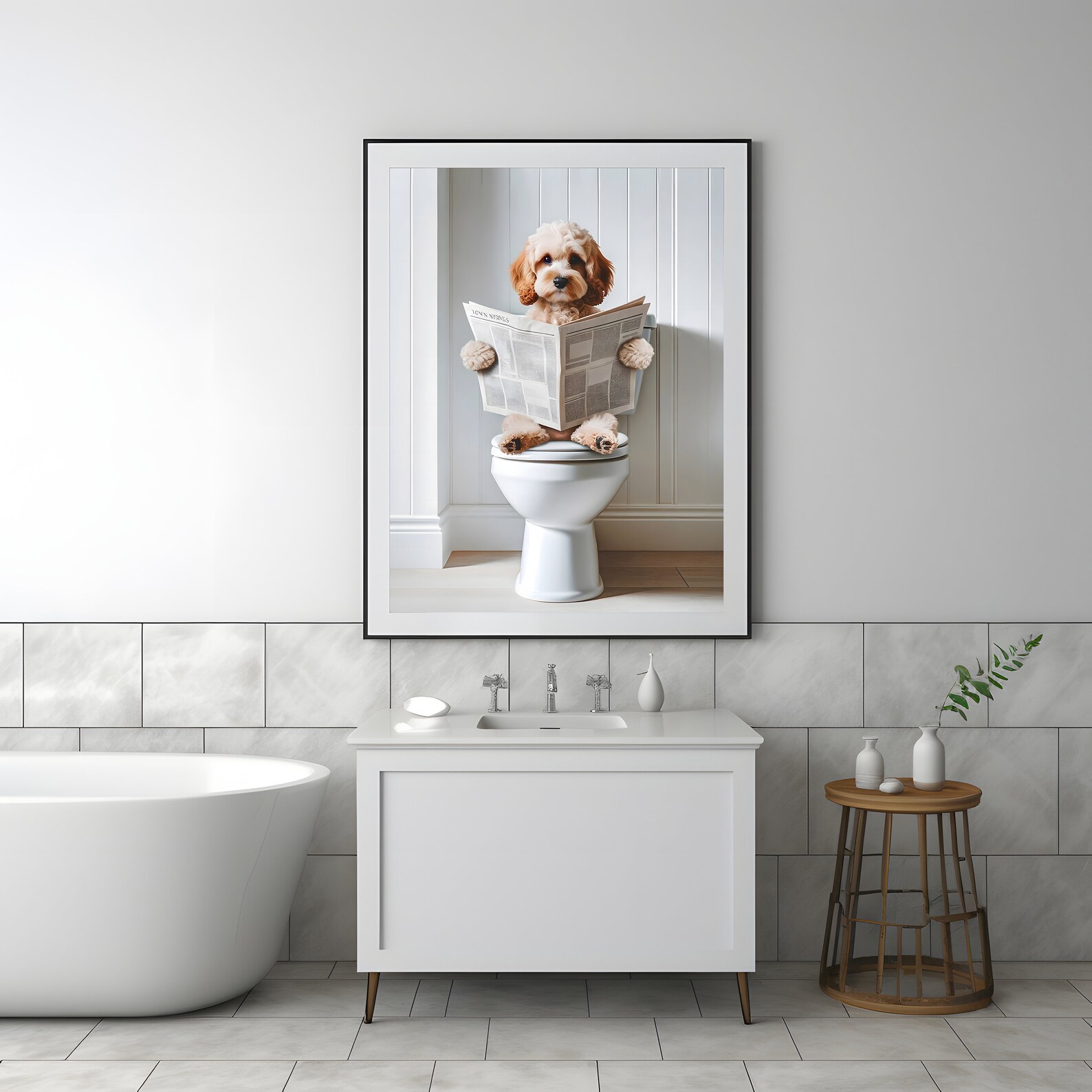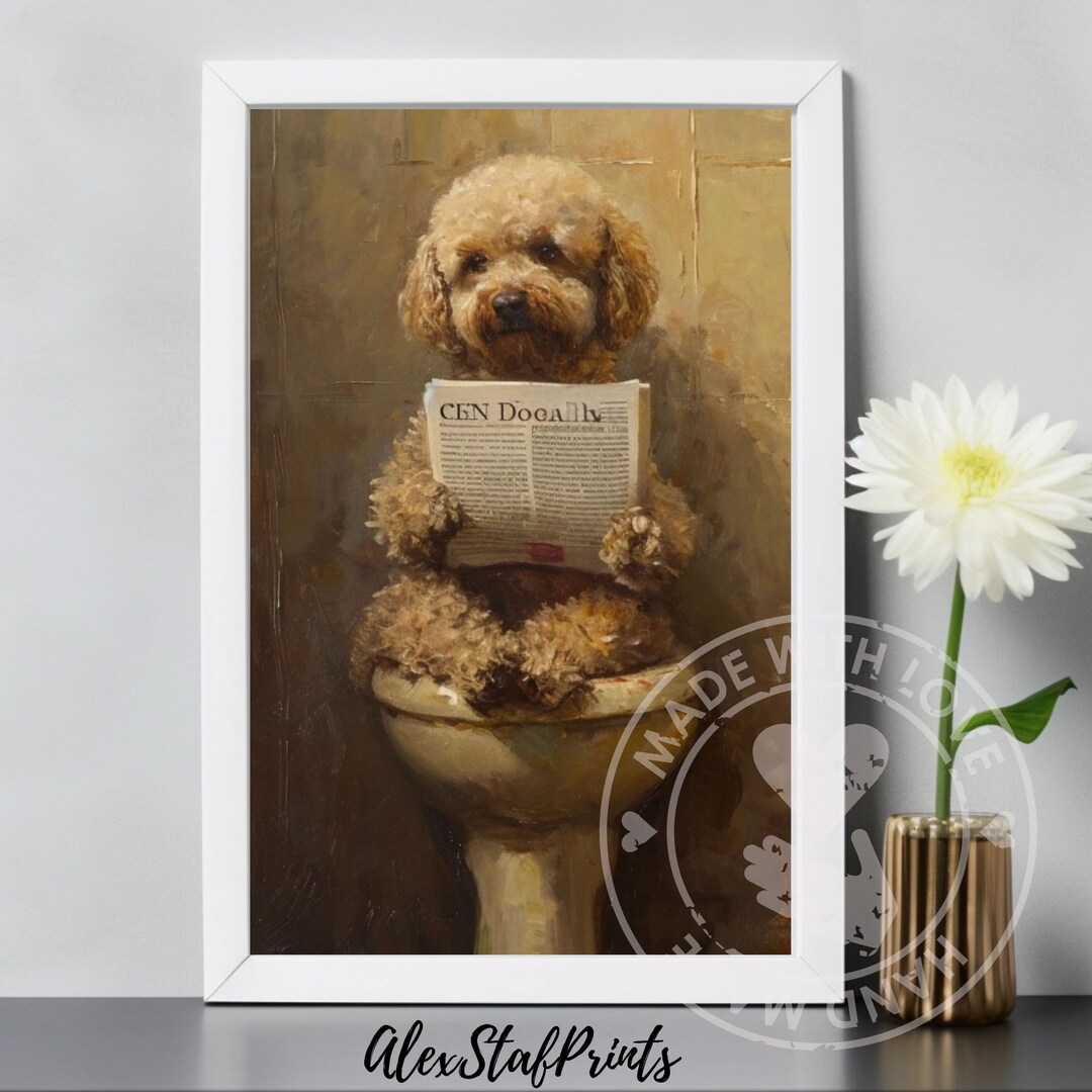 Funny Cockapoo Sat on the Toilet Reading the Newspaper Wall Art Instant ...