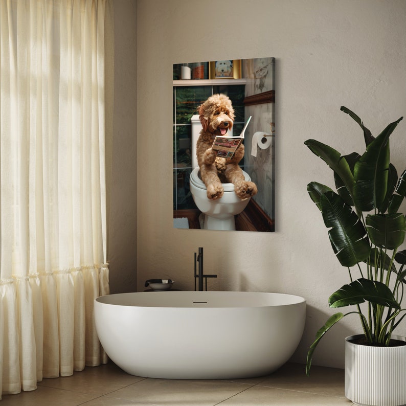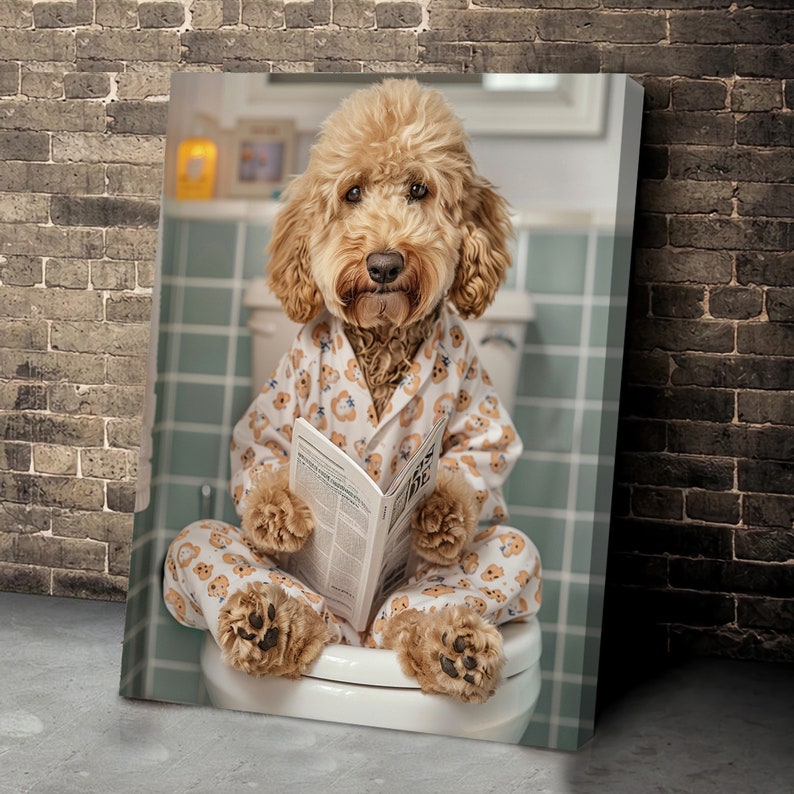 Cockapoo Reading on a Toilet Art Canvas, Dog Sitting on Toilet Wall Art ...