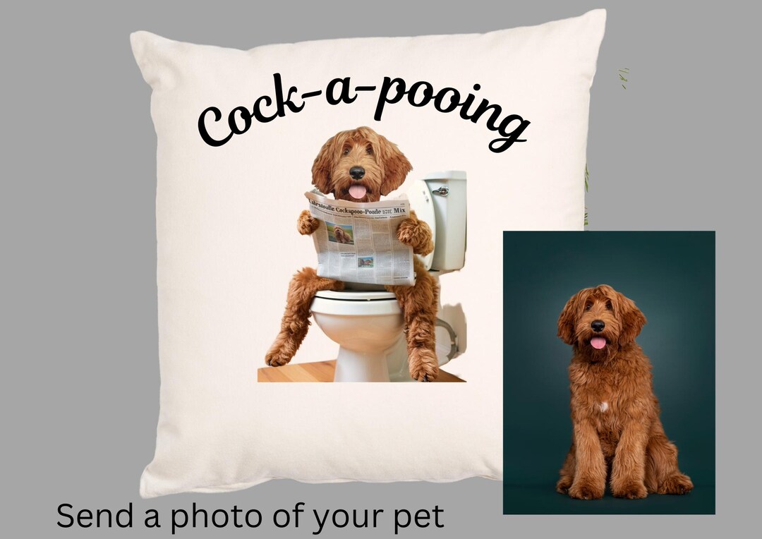 Custom Dog Portrait, Cockapoo on Toilet Personalised Dog Art, Dog Lover ...