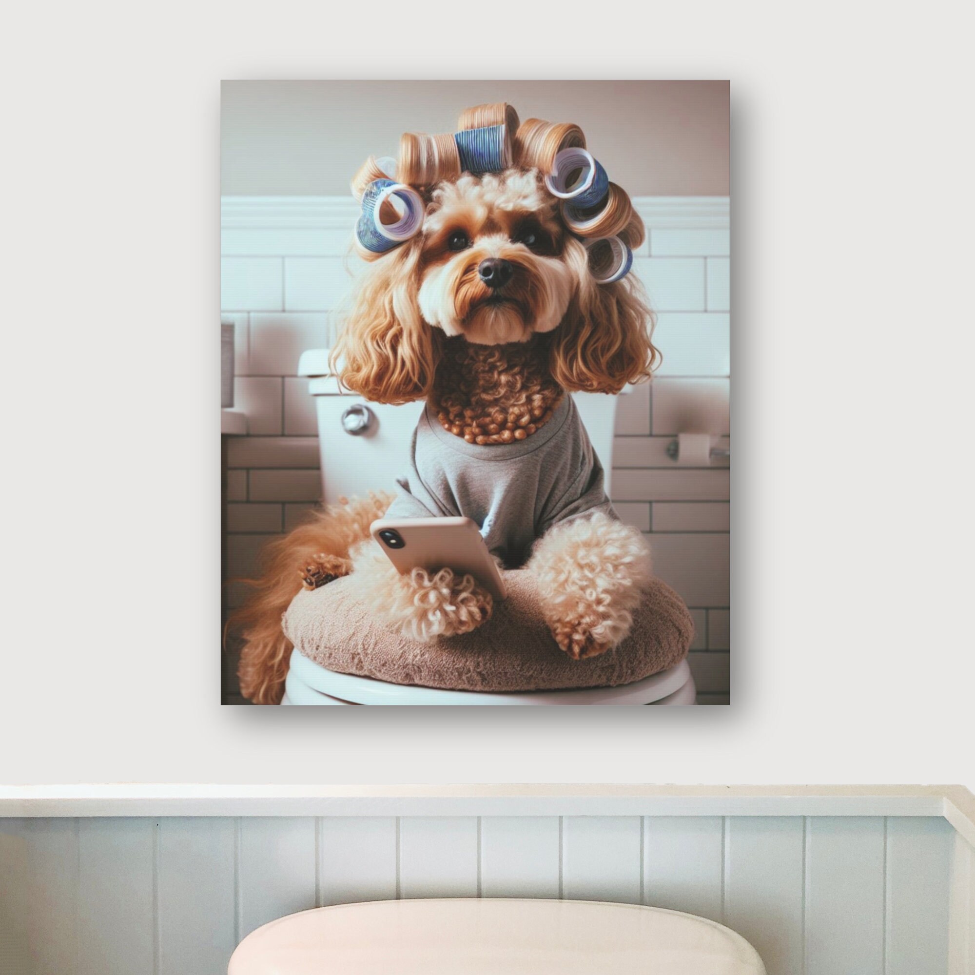 Cockapoo On The Phone On The Toilet Canvas Wall Art Prints – Big Canvas ...