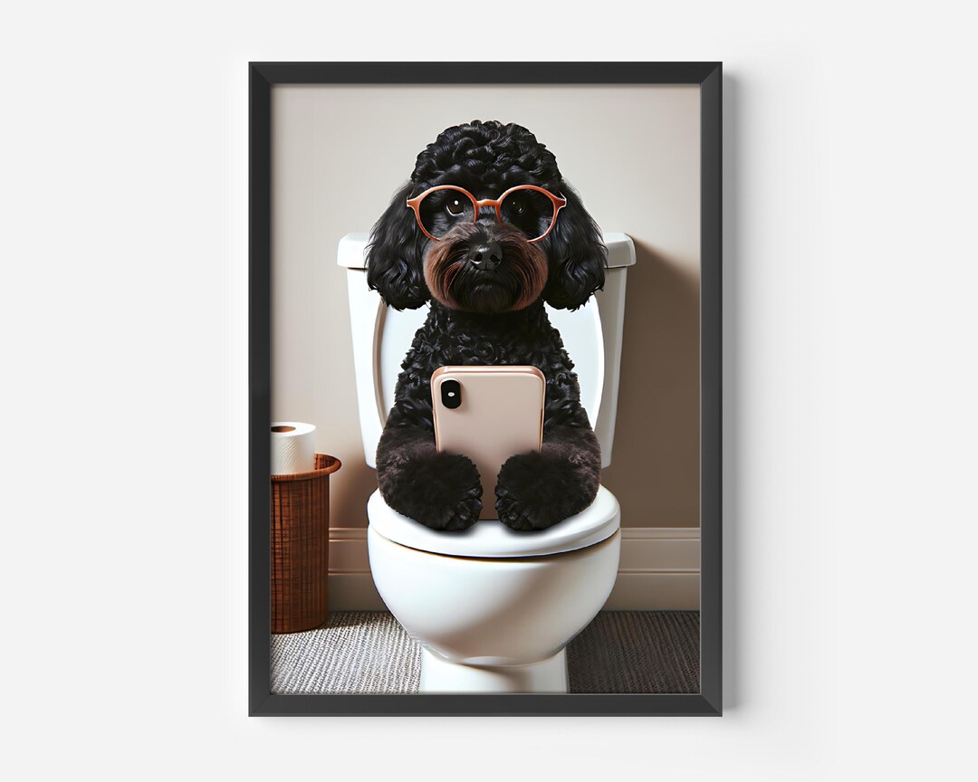 Black Cockapoo on the Toilet Using a Mobile Phone Wall Art, Fathers Day ...