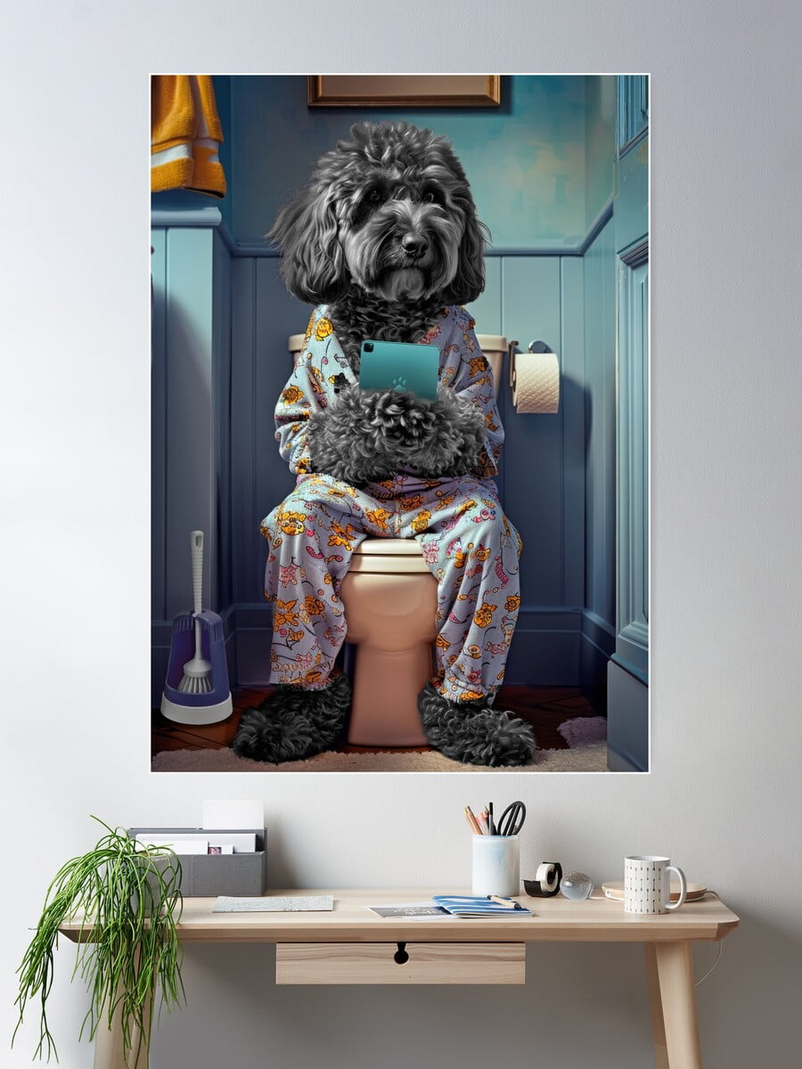 Cockapoo Dog On The Toilet Poster Wall Art, Modern Wall Decor For ...