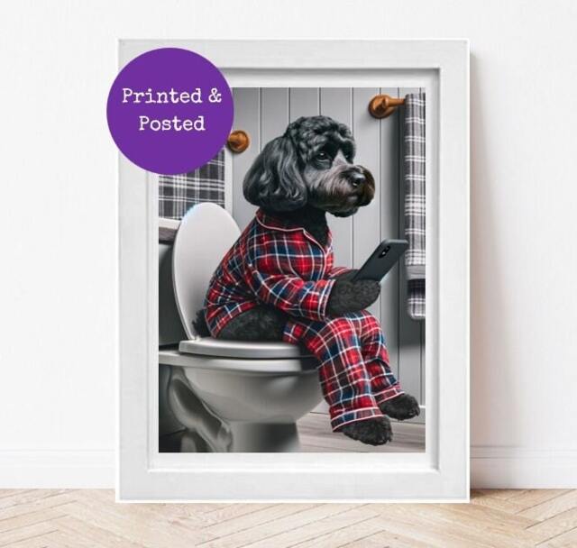Black Cockapoo Wall Art, Funny Bathroom Print, Toilet Poster, Bathroom ...