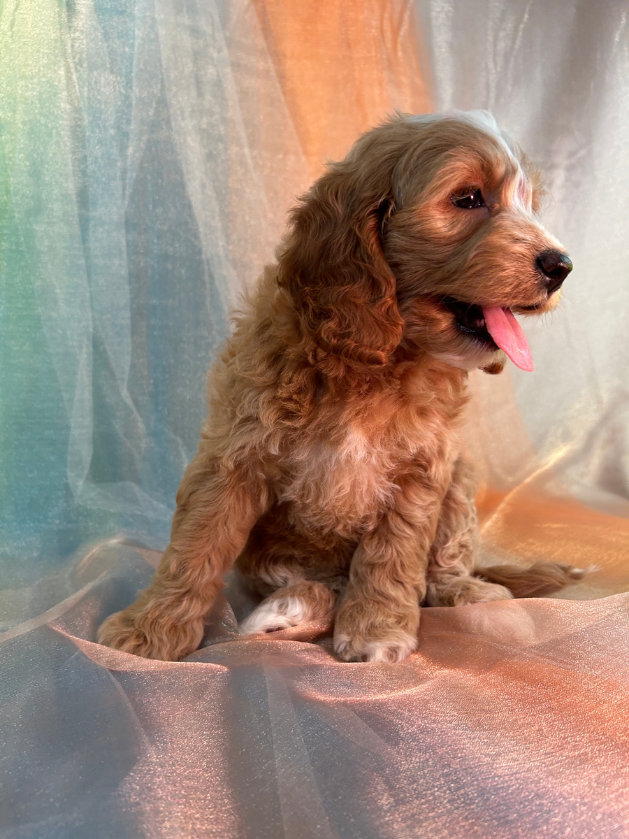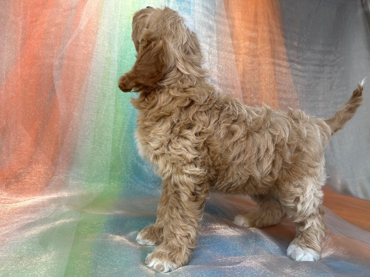 Apricot with White Markings, F1b Cockapoo with Tail, WI, IA, MN
