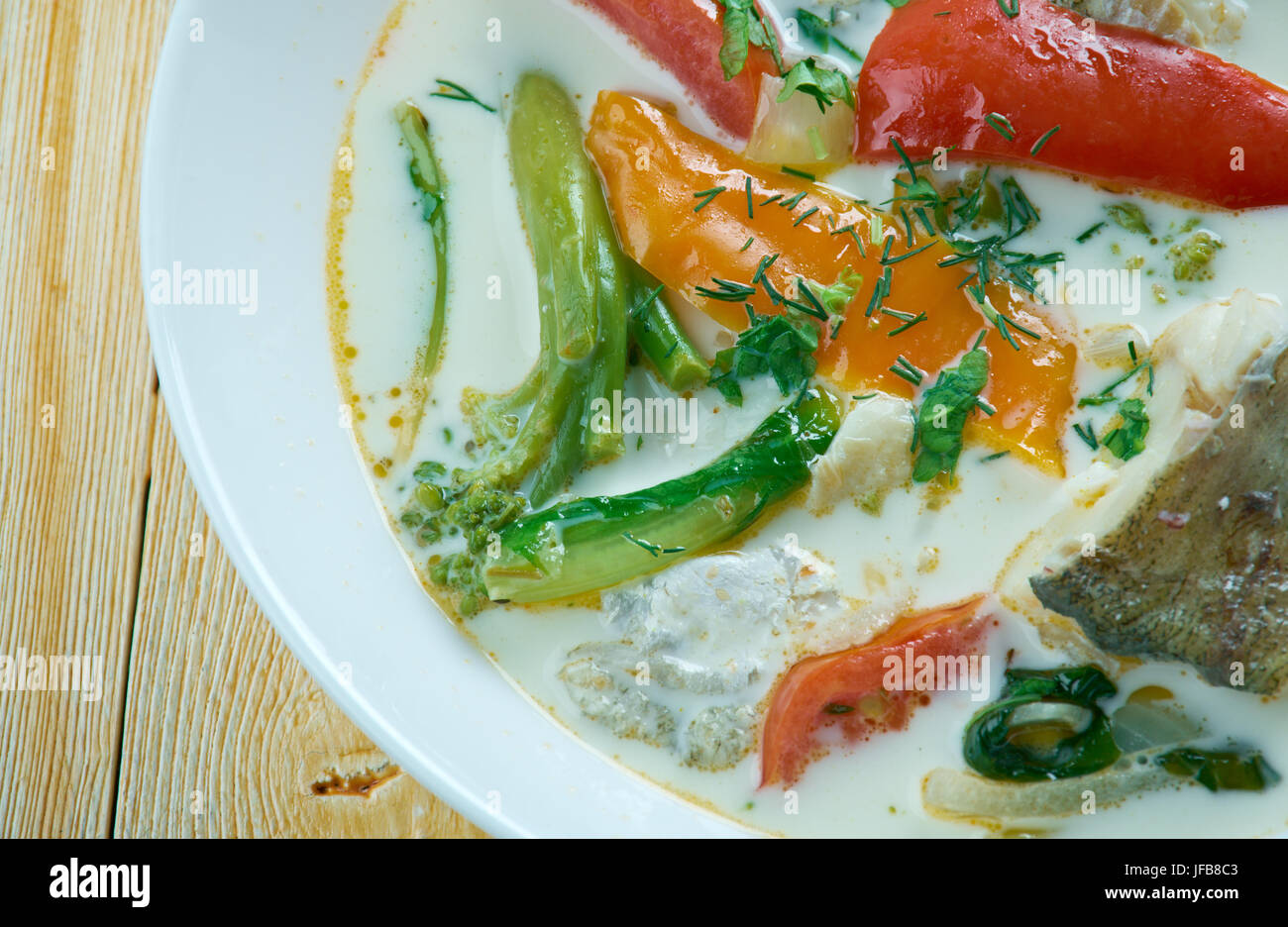 Vegetable and dog cockle shellfish chowder Stock Photo - Alamy