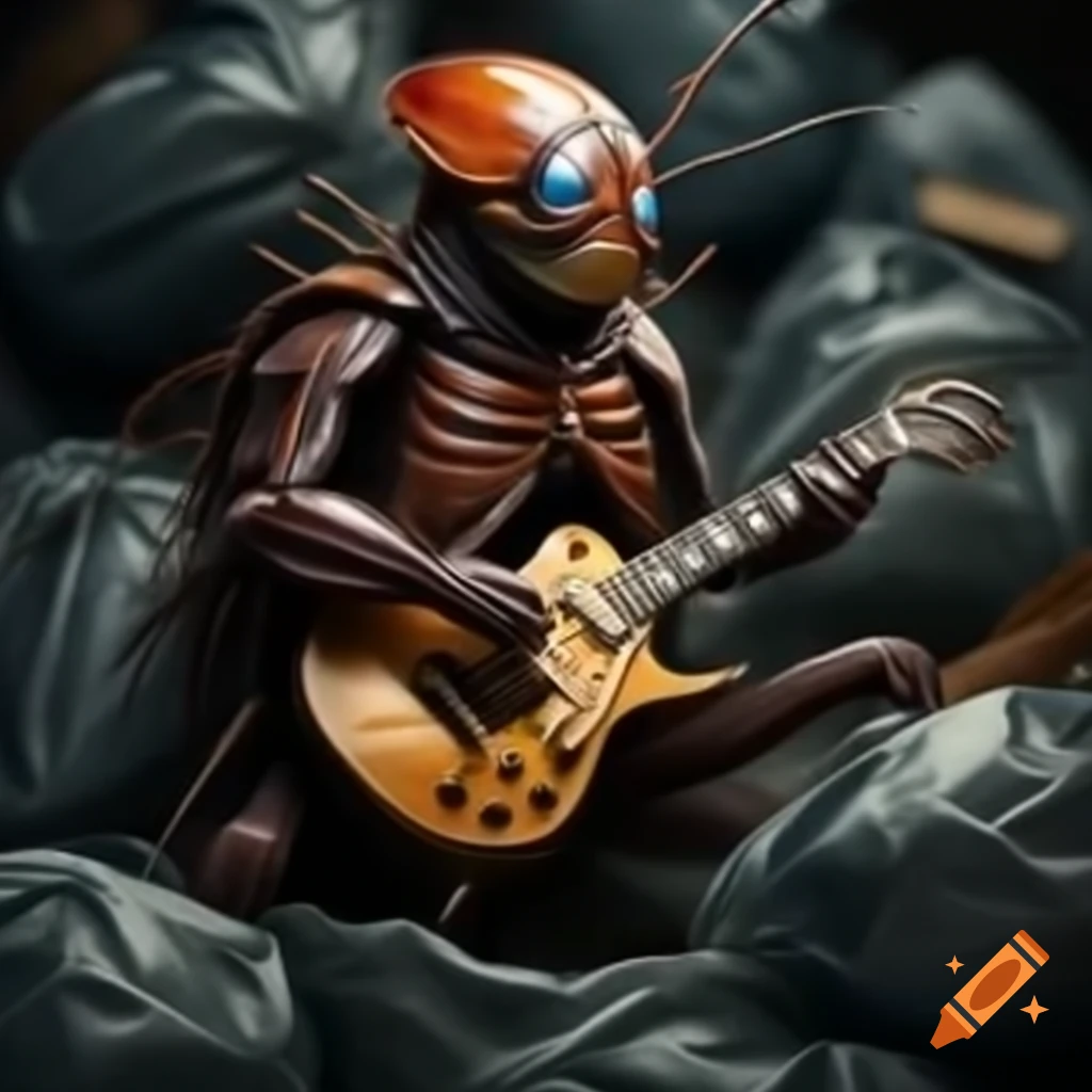 "Cartoon cockroach guitarist" Cockroach rock star" "Guitar-playing ...